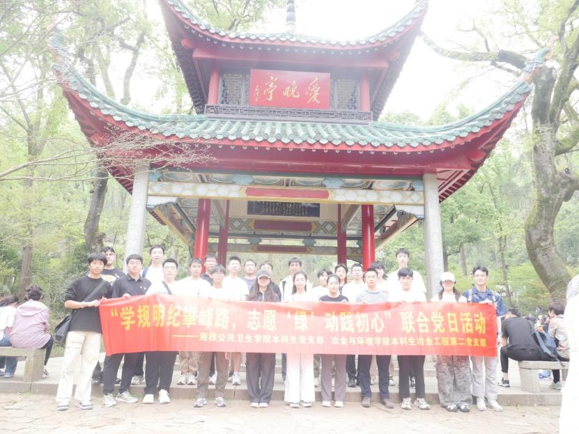本次联合党日活动通过理论学习与志愿实践相结合,为党员们上了一堂生动的党性教育课。活动以中央八项规定精神为指引,筑牢纪律意识与政治定力,通过“清岳麓”志愿服务践行新时代雷锋精神,以点滴行动守护绿水青山,彰显党员的责任担当,在攀登山路中强化健康意识,在合作交流中深化两院友谊。活动以“攀峰”寓意志向,以“绿动”映照初心,激励青年党员在学思践悟中传承革命薪火,以笃行不怠的姿态走好新时代的长征路。