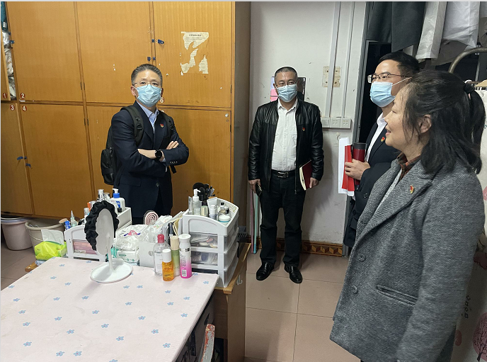 (图为蒋建湘副书记走访学生宿舍)