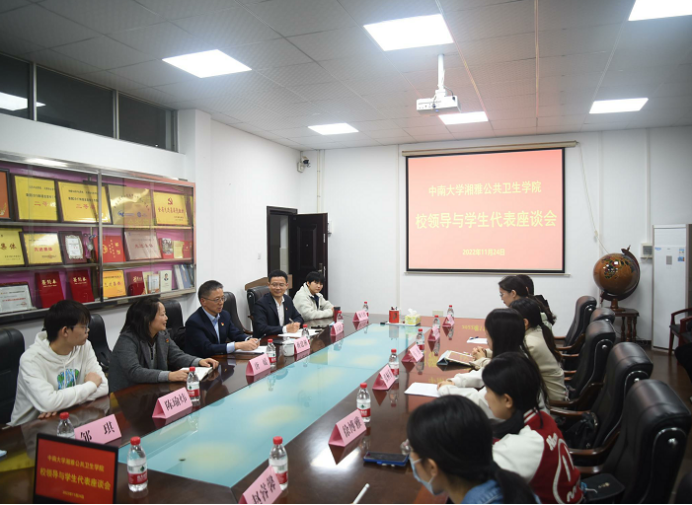 学校党委蒋建湘副书记认真听取学生代表的发言,肯定了同学们心系学校、积极建言献策的主人翁精神,并对学生提出的问题逐一回应。他指出,学生是学校的主体,学校非常重视学生在学习和生活中存在的问题,对目前面临的湘雅老校区图书馆老旧、缺少清真食堂、实习基地宿舍数量不足等问题,在详细了解和研究后,将逐项推进解决。同时,他强调公共卫生以预防为主,面向人群,在新冠疫情的背景下具有重要时代意义,他鼓励同学们夯实专业基础,提升个人素质,不忘初心,牢记使命,毅然投入公共卫生事业,为疫情防控和健康中国贡献自己的一份力量。