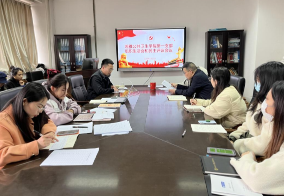 研究生一支部全体党员于公卫楼社会医学PBL会议室召开2022年度组织生活会暨民主评议党员大会。会上,学院党委委员、支部联系人任国峰副院长带领研一支部全体党员重温了习近平总书记在中国共产党第二十次全国代表大会上的重要讲话,并围绕关键词“中国式现代化”向全体党员讲解二十大报告中深刻指出的中国式现代化的本质要求。同时,任院长也向毕业生党员们送出寄语,殷殷嘱托其要踔厉奋发、笃行不怠,以良好的精神风貌踏入新的人生征程。