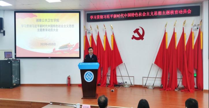 雷先阳就学院高质高效开展主题教育作全面动员和具体部署。他代表学院党委提出了四点要求,一是把准方向,深刻学习领会习近平总书记重要讲话,增强主题教育的思想自觉、政治自觉和行动自觉。二是力求实效,准确把握目标要求,高标准高质量开展好主题教育。三是掌控大局,坚持系统观念,推进落实主题教育各项任务安排。四是组织保障,强化领导力度,确保主题教育取得扎实有效成果。