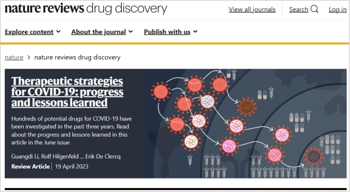 李广迪副教授团队在抗新冠病毒药物研究中取得重要成果。团队在国际顶级药学期刊《Nature Reviews Drug Discovery》上发表了题为“Therapeutic strategies for COVID-19: progress and lessons learned”的综述论文,并荣登该刊6月份的封面。