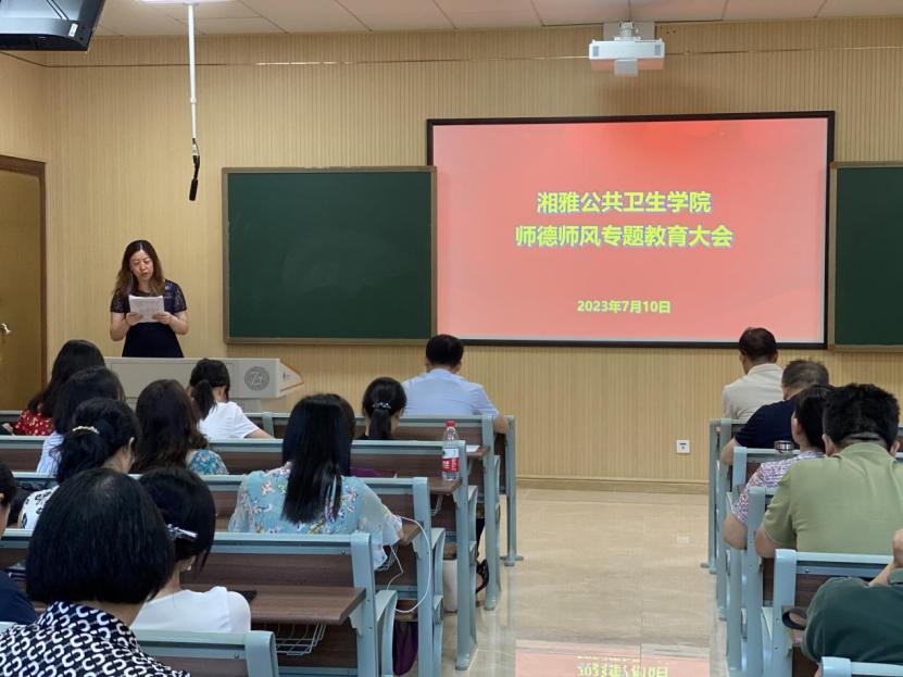 在学院B113教室召开师德师风专题教育大会,学院全体教职工参加会议。