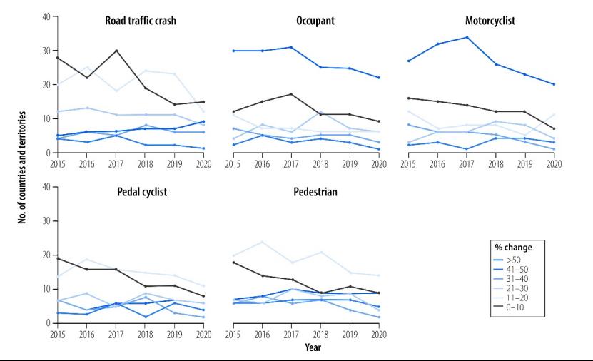 联合国大会第74/299号决议宣布2021-2030年为道路安全行动十年,明确提出在此期间将道路交通伤亡人数至少减少50%。准确可靠的死亡数据是监测目标进展和预测未来趋势的基础,然而目前世界卫生组织死亡数据库中各国最近的道路交通伤害死亡数据质量及其对全球道路交通安全行动进展监测和未来趋势预测的影响尚不清楚。