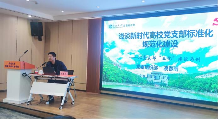 党委组织部正处级组织员凌春雨应邀来院为师生们作了题为《浅谈新时代高校党支部标准化规范化建设》的专题讲座。学院党政领导班子、党支部正副书记及支委成员、各系室(中心)正副主任50余人参加了培训。讲座由院党委书记雷先阳主持。
