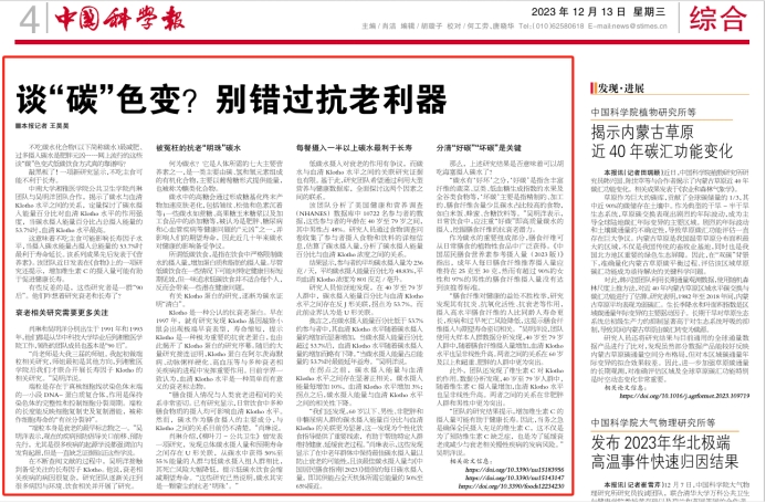 12月13日出版的《中国科学报》,在第四版头条的位置,刊发题为《谈“碳”色变?别错过抗老利器》的新闻。文中,对18porn