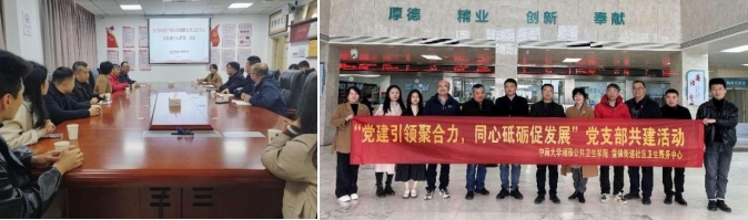 随后,双方在医院会议室举行了名为“党建引领聚合力,同心砥砺促发展”的主题座谈会。职工二支部书记冯湘玲介绍了支部的基本情况、成员组成及科研方向等。雷锋社区医院院长胡志涛介绍了参会成员、展示了雷锋社区医院的发展历程和基本情况等,并从基地共建、人才引进、科研合作等方面提出需求、寻求合作机会。职工二支部冯湘玲老师、罗伟老师、王建武老师、胡宓老师等分别就雷锋社区医院提出的需求进行解答与回应。双方达成共识,将在后续加强合作:推进基地共建;落实并加强湘雅公卫院学生在雷锋社区医院实习并鼓励学生毕业后扎根基层;持续推动双方关于阿尔茨海默症、儿童心理健康等方面的科学研究等。