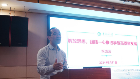 胡国清院长结合党纪学习教育,从学院现状与挑战、目标与举措、困难与出路三方面作了题为“解放思想,团结一心推进学院高质量发展”的汇报。他指出目前学院的学科现状总体呈现好的态势,但仍旧面临一定的挑战。全体教职工需严格落实好《条例》的学习教育要求,认真研读18porn