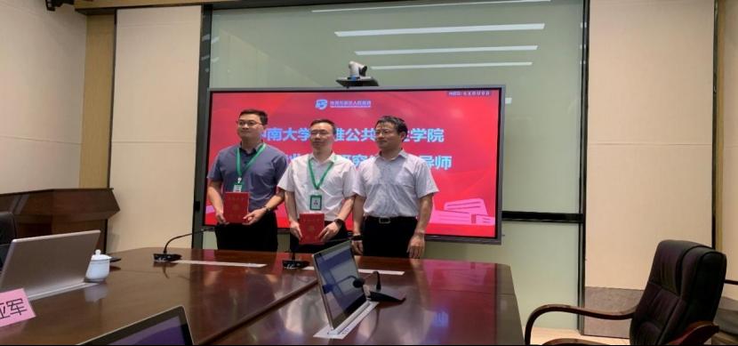 校外兼职硕士研究生导师的滕勇勇、孙亚军两位专家颁发兼职导师聘书。