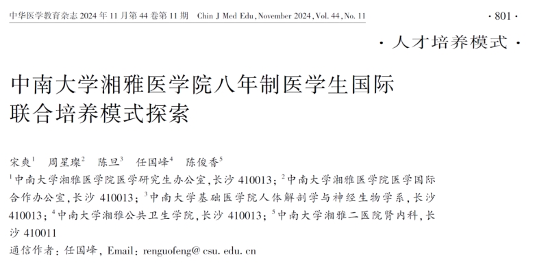 湘雅医学院八年制医学生国际联合培养模式探索”一文在《中华医学教育杂志》2024年11期作为第一篇文章发表,湘雅医学院研究生办宋爽老师为第一作者,18porn