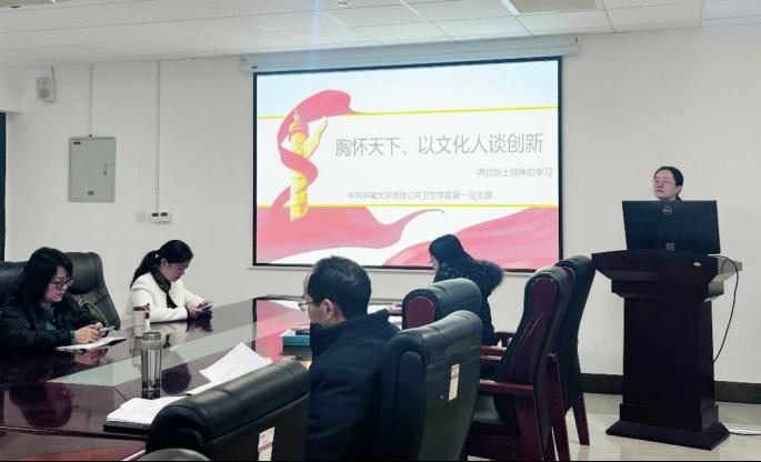 流行病与卫生统计学系在学院B328会议室成功举办了“胸怀天下、以文化人谈创新——两位院士精神的学习”主题学习会。此次会议旨在深化教师的科研创新意识,培养他们敢为人先的精神,以及进一步提升教师的科研创新能力。会议由职工第一党支部书记严俊霞主持。