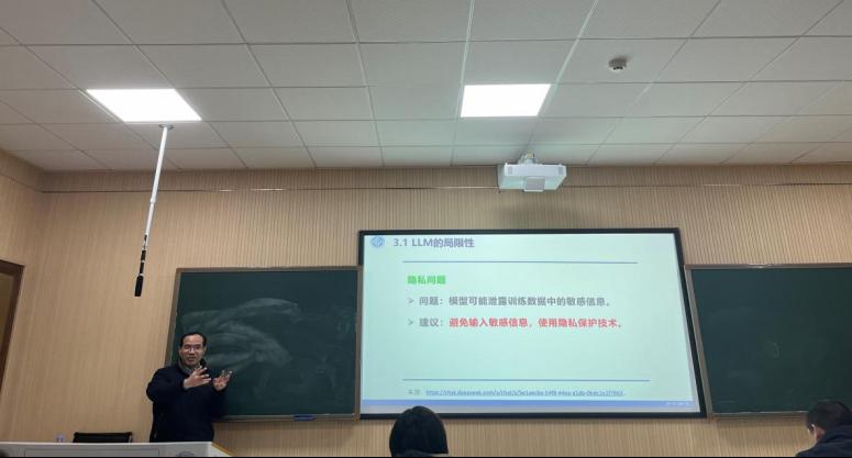 最后,胡院长鼓励大家主动拥抱LLM,跟上时代的节奏,理解其原理并优化传统知识产生方法。同时,他也提醒大家要明晰LLM的优缺点,审慎使用和解读其输出结果。胡院长特别强调,反对在教育中使用LLM代替基本原理的传授和师生互动过程,反对学生依赖LLM完成作业、放弃主动思考和动手实践的过程。