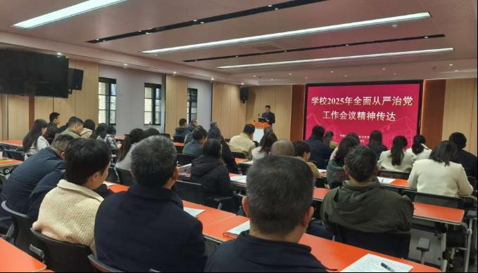2025年全面从严治党工作会议精神,重点介绍了学校党委重要指示精神,并对2025年的重点工作进行了详细部署。他强调,学院上下要深入学习贯彻习近平新时代中国特色社会主义思想,全面贯彻新时代党的组织路线,持续推进作风建设,巩固深化党纪学习教育成果,切实增强全面从严治党工作成效。