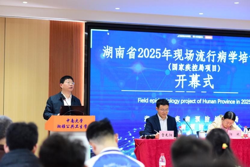 湘雅公共卫生学院、省疾控中心做了精心组织和安排,从培训方案确定、课程科学设置、优质师资聘请,到学员食宿安排等倾注大量心血。二是希望大家展现“团队协作、敬业奉献、探索创新、求真务实”的精神,在工作中发挥业务骨干示范作用,推动各地现场流行病学技术和能力提升,在未来的疾病预防控制和公共卫生应急中扮演关键角色。三是希望大家成为本地区乃至全省、全国疾控工作的领军人物,为提升我省的公共卫生安全作出更大贡献。