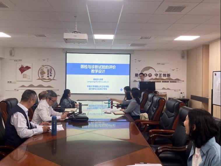 在青年教师预讲环节,杨淞淳老师围绕《筛检与诊断试验的评价》进行了教学展示,结构清晰、表达生动,结合趣味案例,获得与会教师的充分肯定。教学督导刘爱忠、王乐山、李硕颀、胡建安等老师分别从内容设计、逻辑架构、表达方式等方面提出了专业的反馈建议,进一步促进了青年教师的教学能力提升。
