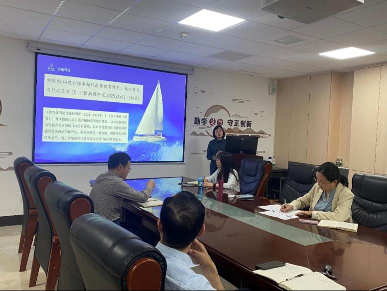 会上,史静琤老师以《构建自强卓越的高等教育体系:核心要义与行动策略》为题作专题报告,系统解读了文献和理论,深入剖析了“自强卓越”的内涵以及高校教师在教学中的使命与责任,引发了与会教师的热烈讨论。