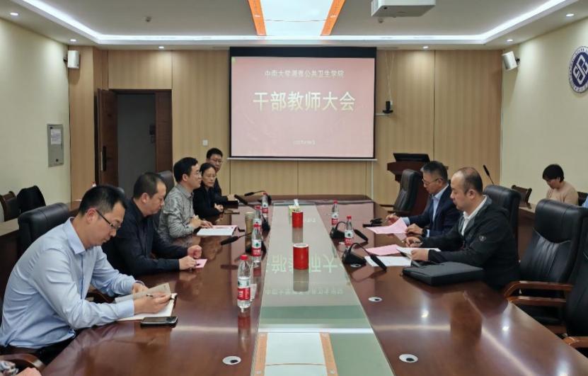 的发展,希望全院师生能够把思想行动统一到学校党委的决定上来,积极支持开天瀚同志开展工作。同时,他也对全院师生提出了四点希望和要求:一是要在格局视野上有更好的战略眼光,以更广阔的视野审视公共卫生事业的发展趋势;二是要在履职尽责上有更大的担当,切实推动学院各项工作不断取得新进展;三是要在争先进位上有更强的本领,不断提升专业素养和综合能力;四是要在修身律己上展现更好的形象,做好廉洁自律的表率,时刻念好“紧箍咒”、架起“高压线”、设立“防火墙”,严格贯彻执行中央八项规定及其实施细则精神。