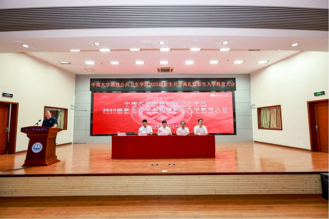 党委书记雷先阳、院长胡国清、党委副书记王超、副院长开天翰,学院2002级校友、长沙市疾病预防控制中心党委书记、主任杨学文,以及学院综合办、学工办、业务办、各系(中心)负责人、2025级全体新生共260余人参加典礼。开学典礼由王超主持。