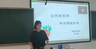 接下来则由预防2104班的卢欣瑶同学为同学们分享公共关系学的学习方法。“案例分析”“期末论文”……不少同学刚一上课,便被老师的高要求“劝退”。而她曾在小组展示上获得接近满分的评价,期末综合成绩也取得了96分的高分。