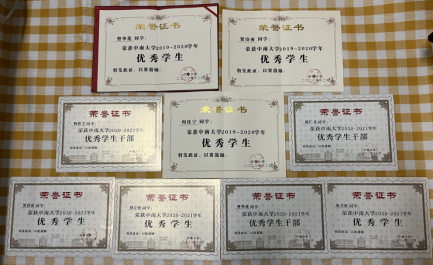 本科生招生办干事,4位同学任辅学义工,1位同学担任军训教官3年,同学们在各自擅长与喜爱的领域发光发热,“聚是一团火,散是满天星”,在宝贵的大学时光中体现责任感使命感,实现自我价值,在学院及学校的发展长河中留下了不可磨灭的印迹。