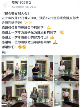 班级每月举办形式多样的活动,如图书漂流、参观湖南省科技馆等,旨在增加同学们的知识储备,提高文化素养,活动参与率高。与此同时,常于课余时间组织团建活动,如游泳、滑冰、包饺子、包粽子等,丰富了同学们的课余生活,锻炼了各项能力,增强了班集体的凝聚力。此外,班级重视宣传方面的建设,以助于塑造班级学生的价值取向,弘扬中华优秀传统文化等。班级官Q持续进行宣传,主要分为:红色基因赓续、日常班级管理、暖心生日祝福、传统文化教育、班级风采展示,共340条宣传推送。平均每个月14条推送,宣传力度到位,得到了同学们的大力支持、学院的高度认可。其中疫情封校期间,“请回答2022”版块普及疫情防控知识、分享疫情下的生活,在疫情防控常态化下,寻找生活的意义。